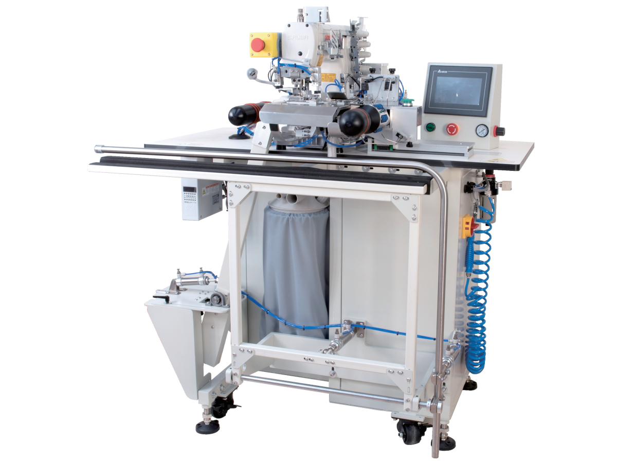 Wysokowydajny automat szwalniczy szyjący ściegiem drabinkowym, przeznaczony do podwijania dołów koszulek T-Shirt, Polo itp w obwodzie zamkniętym. Maszyna automatycznie pozycjonuje materiał pod stopką maszyny. Cały proces szycia dołu koszulki odbywa się w pełni automatycznie, bez ingerencji operatora.