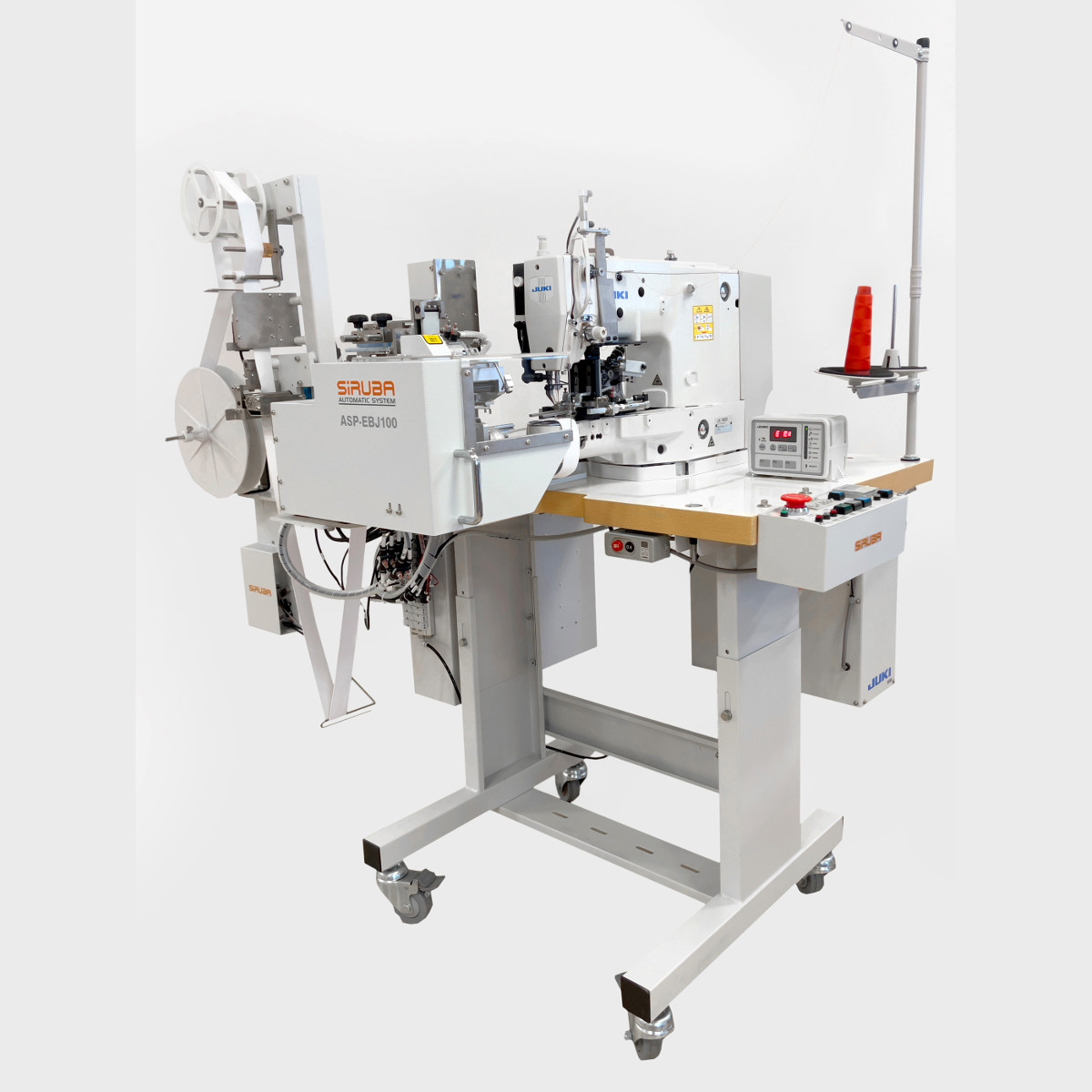 [vc_row][vc_column][vc_column_text woodmart_inline="no" text_larger="no"]Wysokowydajny automat szyjący przeznaczony do łączenia płaskiej gumy w obwody zamknięte przeznaczone do szycia slipów, majtek, bokserek, topów itp. Maszyna automatycznie odmierza i odcina gumę na zadaną długość, po czym składa oba brzegi do siebie i przeszywa według zaprogramowanego wzoru przeszycia. Automat współpracuje z głowicą szyjącą maszyny Juki LK-1920.