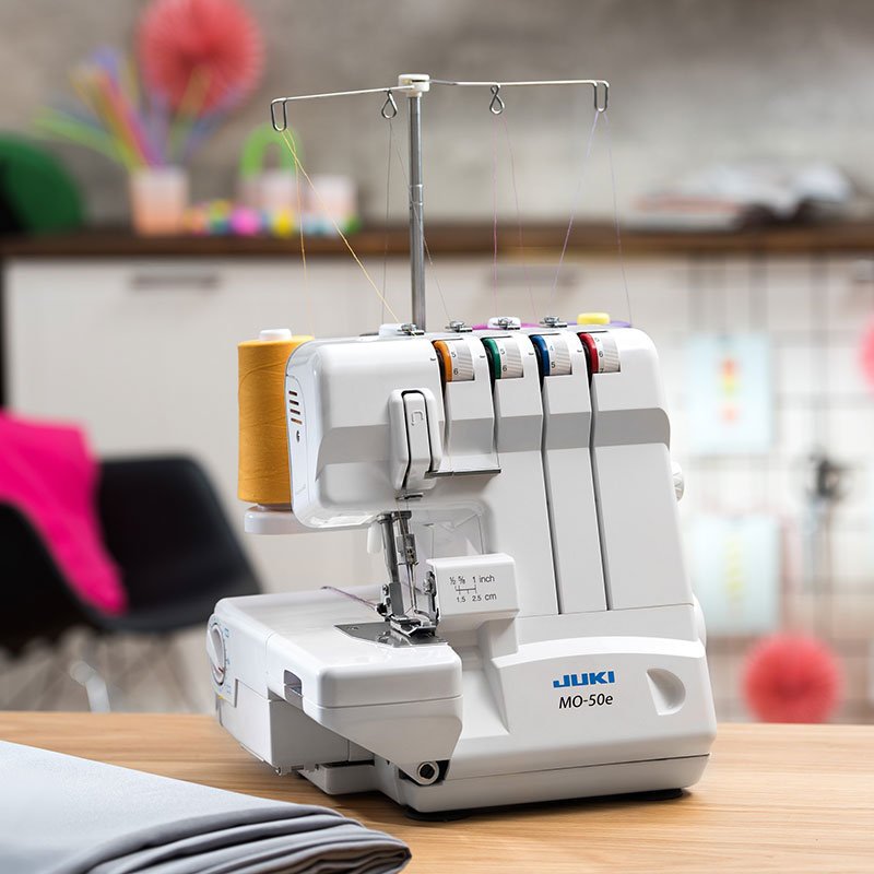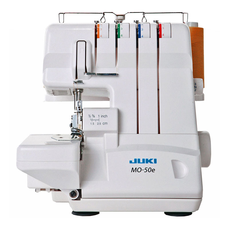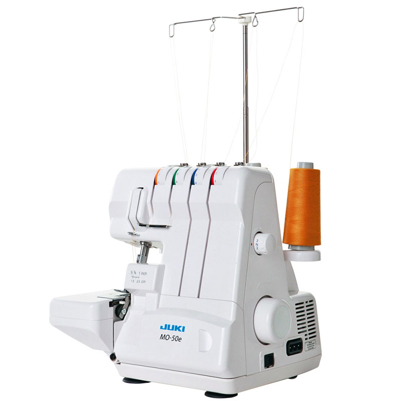 Owerlok JUKI MO-50e to 3 lub 4-nitkowy owerlok renomowanej firmy JUKI. Posiada szereg cech, dzięki którym zadowoli nawet bardzo wymagających miłośników szycia – szyje z prędkością do 1300 ściegów/min, posiada transport różnicowy, który zapobiega marszczeniu się elastycznych tkanin oraz dzianin, a dzięki wbudowanemu w płytkę ściegową ruchomemu języczkowi, pozwala na szybką zmianę pomiędzy ściegiem owerlokowym, a mereżką (przestawienie na mereżkę nie wymaga zmiany stopki i płytki ściegowej).