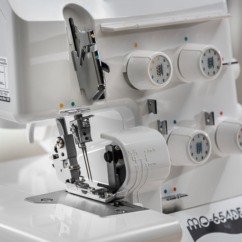 JUKI MO-654DE to wszechstronna i szybka maszyna – wkłuje się w materiał 1500 razy/min. Polecana dla szukających najwyższej jakości i funkcjonalności.