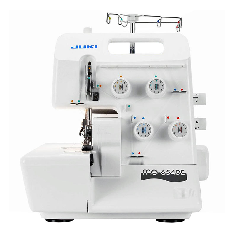 Owerlok JUKI MO-654DE to 2, 3 lub 4-nitkowy owerlok renomowanej firmy JUKI, jeden z najpopularniejszych modeli w kraju. Metalowe podzespoły w parze z jakością wykonania oraz możliwością szycia aż 7 ściegami sprawiają, że ten model zadowoli nawet bardzo wymagających miłośników szycia.