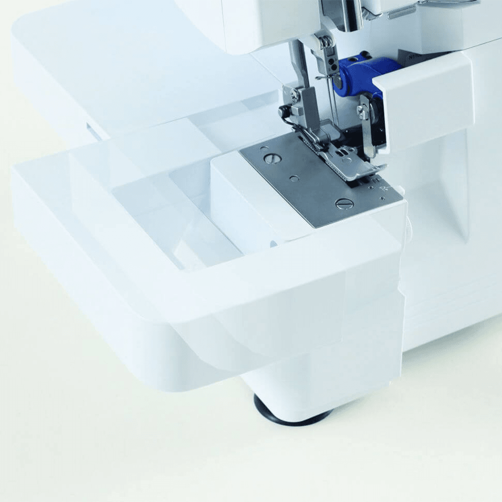 Wbudowany w płytkę ściegową suwak pozwoli na zmianę ściegu overlockowego na mereżkę bez zmiany stopki i płytki ściegowej. Warto także zwrócić uwagę na możliwość zmiany na ścieg 2-nitkowy, który zapewni ozdobne wykończenie. Co więcej maszyna wyposażona jest w tzw. wolne ramię, które ułatwia szycie po obwodzie np. przy podwijaniu nogawek w spodniach, przy wykańczaniu rękawów oraz przy szyciu odzieży dziecięcej.
