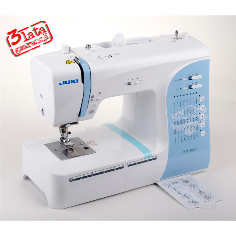 JUKI HZL-HD40 to podstawowa maszyna komputerowa o nowoczesnym designie, posiadająca stabilną i trwałą konstrukcję oraz metalowe podzespoły.