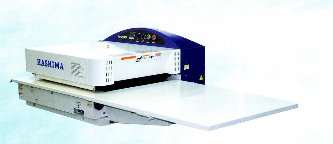 Podklejarka o ruchu ciągłym, taśmowa, szerokość 450 mm, max. pobór mocy grzałek 4 kW, regulowana temperatura do 195 C utrzymywana przez elektroniczny termostat z funkcją programowania (informacja o wartości temp. zadanej oraz temp. rzeczywistej), regulowany czas podklejania i docisk max. 1,5 kg/cm2. Maszyna posiada system samoczynnego pozycjonowania taśm, zabezpieczenia przed zsunięciem z wałków prowadzących oraz wałki zbierające. Posiada tzw. „otwarty bok” pozwalający na podklejanie elementów szerszych niż 450 mm.