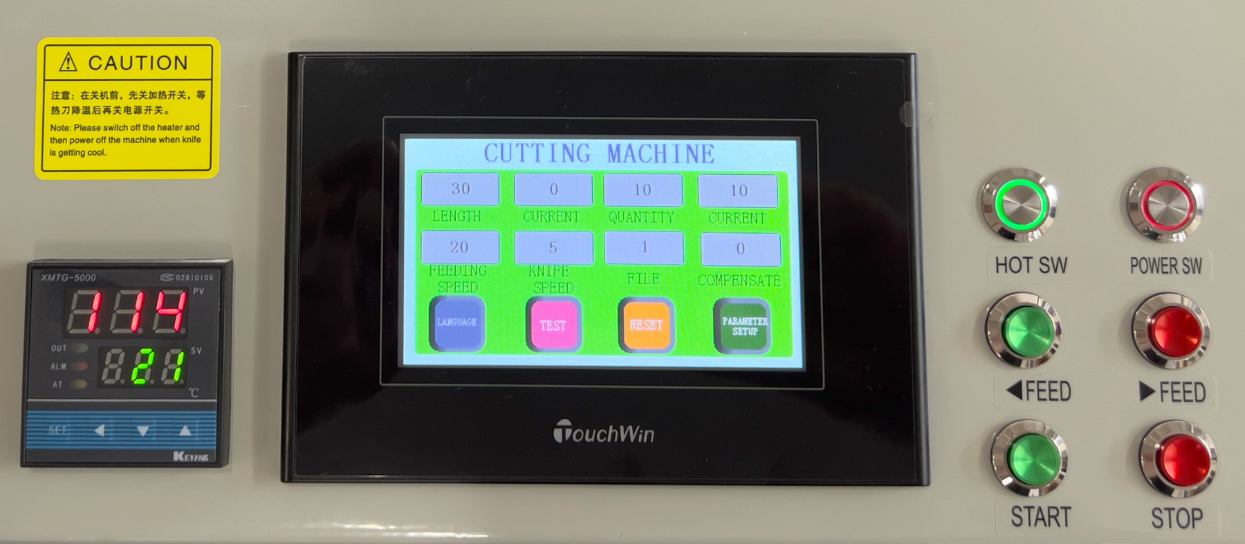 Urządzenie tnące zarówno na zimno jak i na gorąco. Maszyna potrafi odmierzyć zadaną długość, którą ustawiamy na wbudowanym dotykowym panelu sterującym. Niezależny programator sterujący temperaturą noża tnącego.