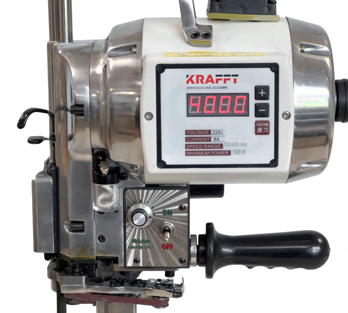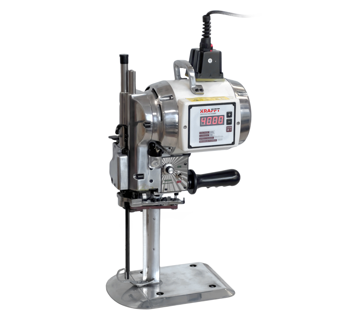 Nóż pionowy servo 1600W z regulacją prędkości ostrza i wysokością cięcia do 21 cm.