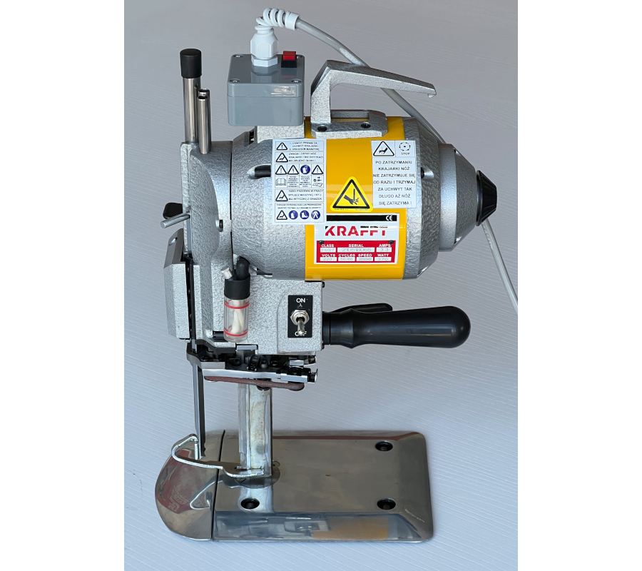 Noże pionowe Krafft są standardowo wyposażone w zabezpieczenie uniemożliwiające ponowne samoczynne uruchomienie się urządzenia, po zaniku zasilania w krojowni (wymóg BHP).