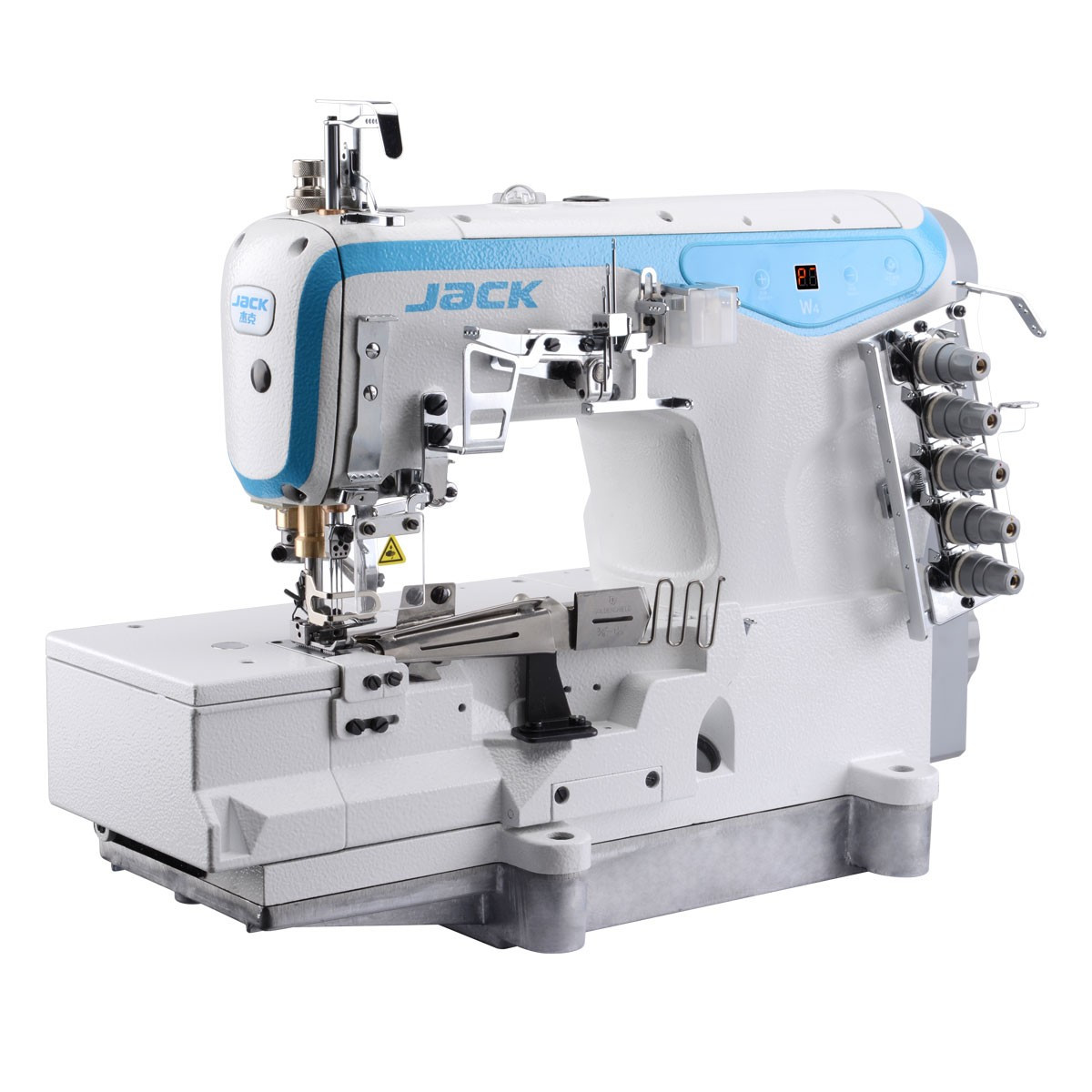 Lamowarka 3-igłowa drabinkowa (renderka) ze zintegrowanym silnikiem energooszczędnym servo. Łoże płaskie, z dolnym i górnym przeplotem, przeznaczona do ozdobnego lamowania przegów dzianin. Wykorzystywana przy produkcji bielizny, odzieży sportowej, dziecięcej itp.