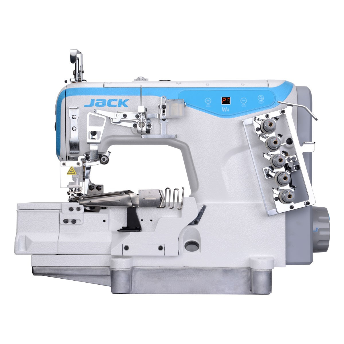 Zintegrowany silnik zamontowany w główce maszyny bezpośrednio na wale głównym maszyny (system DIRECT DRIVE) gwarantuje cichą i niezawodną pracę, oraz mniejsze zużycie energii elektrycznej.