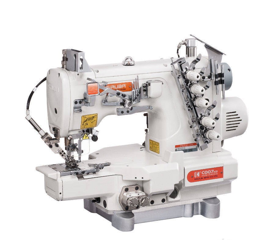 Maszyna posiada automatyczne funkcje: obcinanie nici, pozycjonowanie igieł, podnoszenie stopki. Sterowanie pneumatyczne (wymagane podłączenie do źródła sprężonego powietrza).