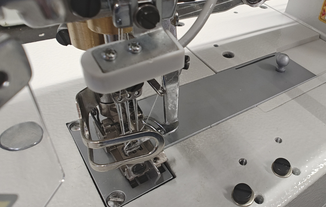 Renderka płaska 3-igłowa z rozstawem igieł 5,6 mm, przeznaczona do materiałów lekkich i średnich.