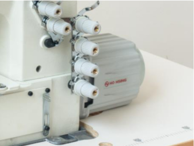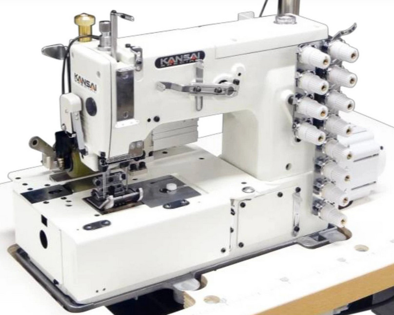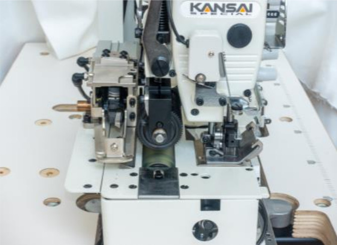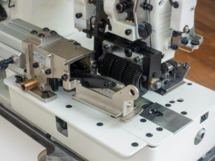 Specjalistyczna paskarka 6-igłowa łańcuszkowa wyposażona w przepuszczanie ściegów na początku i na końcu paska, tylny puller wspomagający transport materiału oraz gilotynę obcinającą taśmę paska i nici. Maszyna standardowo posiada nowoczesny energooszczędny silnik servo Direct umieszczony bezpośrednio na wale maszyny.
