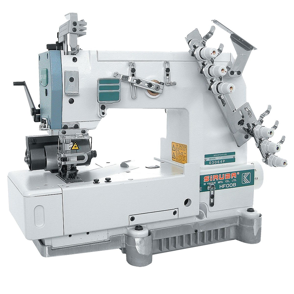 Maszyna łańcuszkowa 3-igłowa 6-nitkowa, przeznaczona do materiałów średnich i ciężkich, wyposażona jest w metalowy tylny puller wspomagający transport przeszywanych materiałów. Istnieje możliwość zamontowania zwijacza do łączenia materiałów szwem podwójnie zawiniętym (szew francuski) – np. szwy boczne w nogawkach spodni jeansowych i inne.