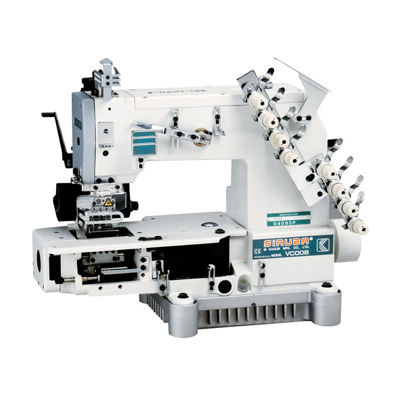 Uniwersalna maszyna łańcuszkowa - gumiarka 4-igłowa z łożem cylindrycznym szyjąca ściegiem łańcuszkowym. Maszyna przeznaczona do przeszywania gumy w pasku spodni odzieży sportowej oraz wielu innych zastosowań. Zastosowany ścieg łańcuszkowy charakteryzuje duża odporność na rozciąganie.