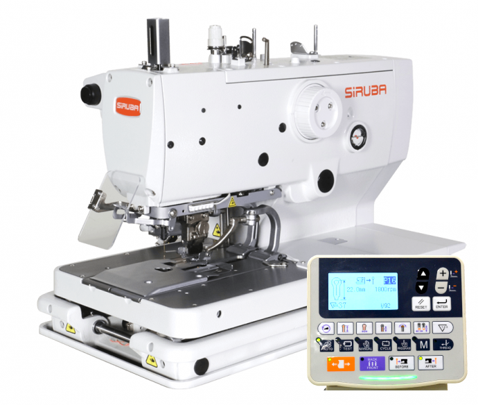 Automatyczna dziurkarka odzieżowa 2-nitkowa, wyposażona w silnik energooszczędny servo wbudowany w głowicę maszyny oraz silniki krokowe sterujące poszczególnymi mechanizmami.