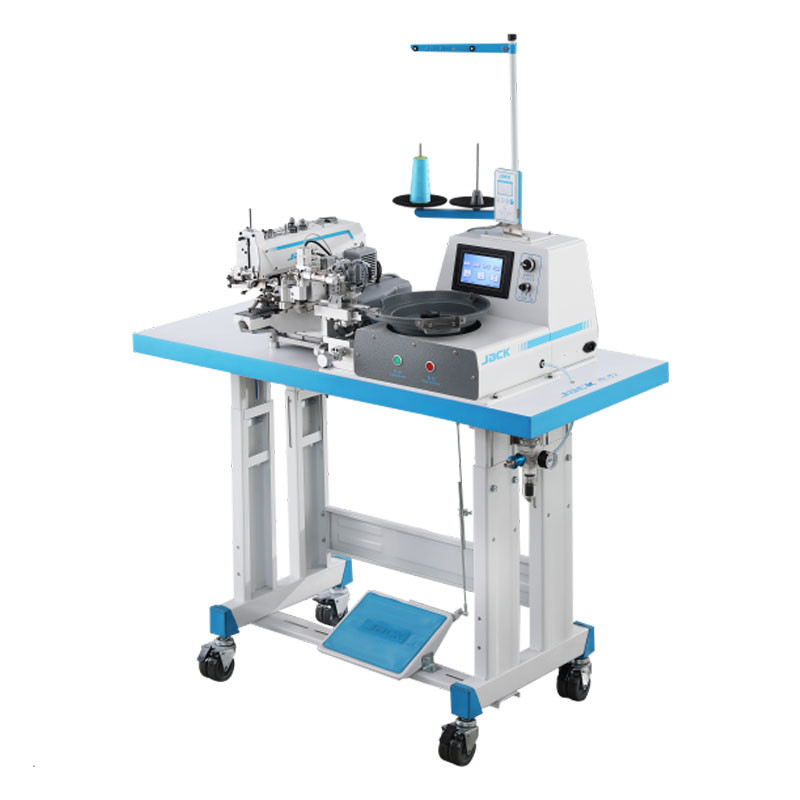 Wysokowydajna 1-nitkowa guzikarka łańcuszkowa ze zintegrowanym silnik Direct Drive oraz automatycznym podajnikiem płaskich guzików, który znacząco wpływa na zwiększenie wydajności pracy. Cały proces podawania sterowany jest za pomocą silników krokowych, maksymalna prędkość podawania to 30 guzików na minutę. Automatyczne pozycjonowanie i odrzucanie guzików ułożonych wierzchnią stroną do dołu.