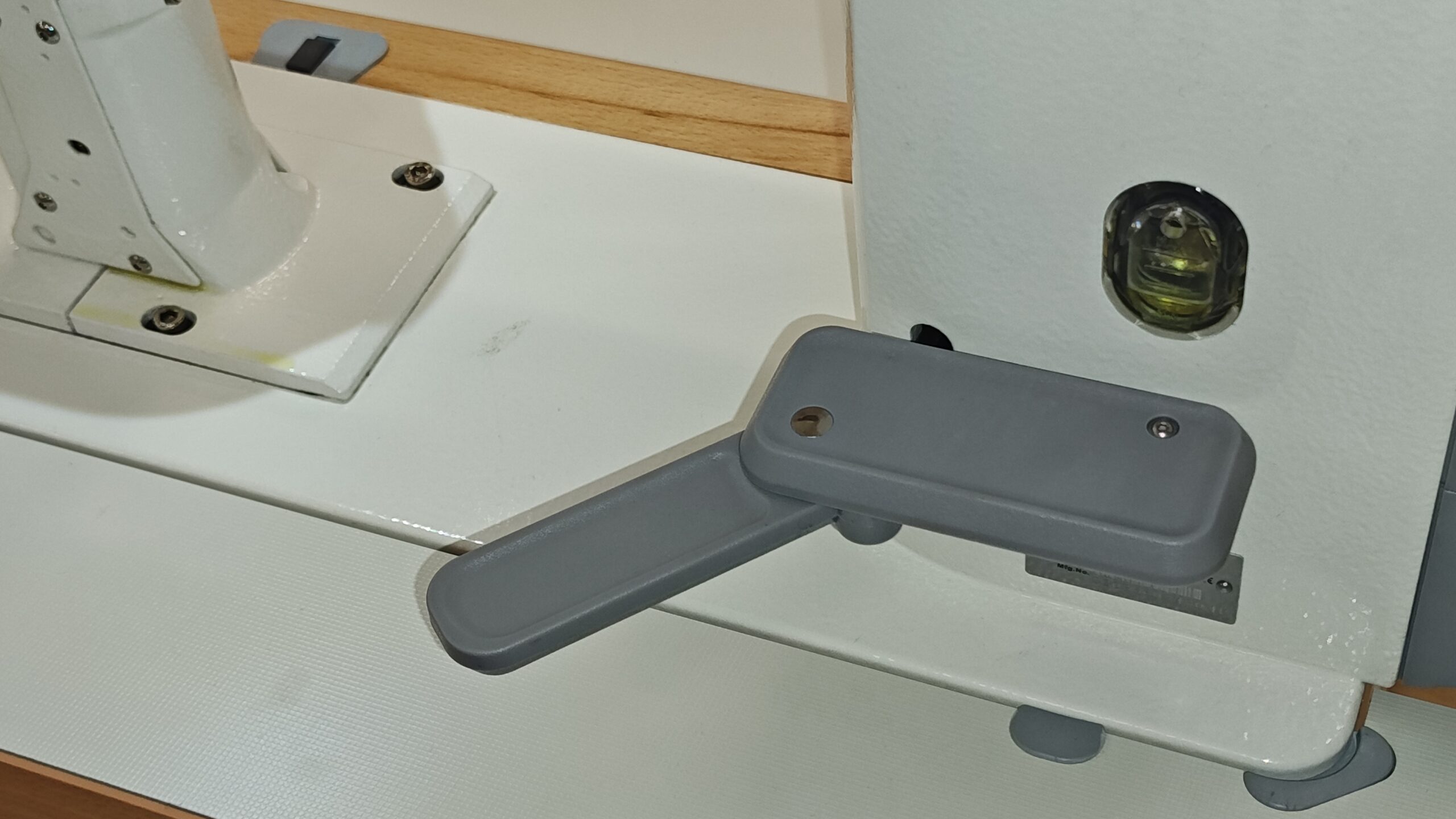 Maszyna fabrycznie wyposażona jest w opuszczany prowadnik (linijkę) umożliwiający precyzyjne szycie wzdłuż krawędzi materiału.