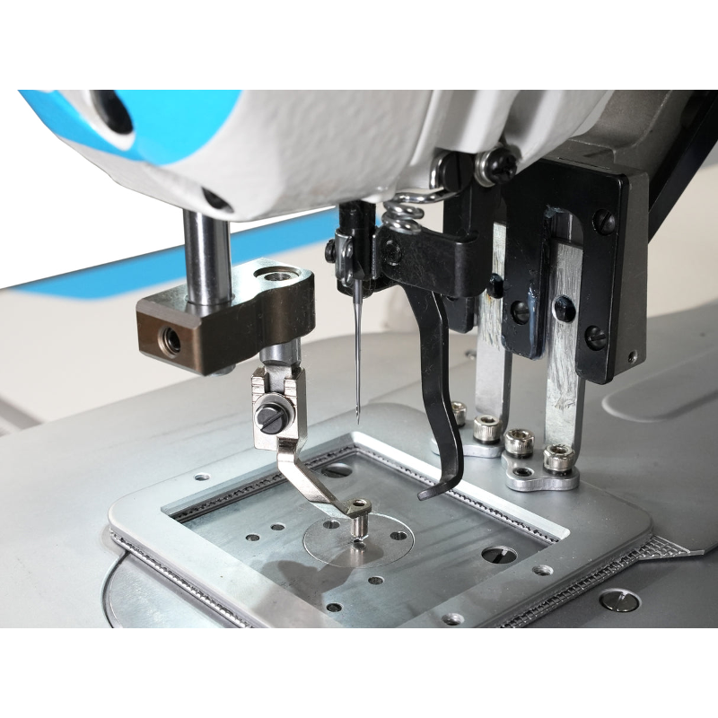 Elektronicznie sterowana, w pełni programowalna ryglówka 2-nitkowa z dyżym polem szycia 60 x 50 mm, przeznaczona do szycia materiałów średnich i cięższych, wyposażona w energooszczędny silnik servo wbudowany w głowicę maszyny (system direct drive) oraz silniki krokowe, sterujące oddzielnie poszczególnymi mechanizmami maszyny.