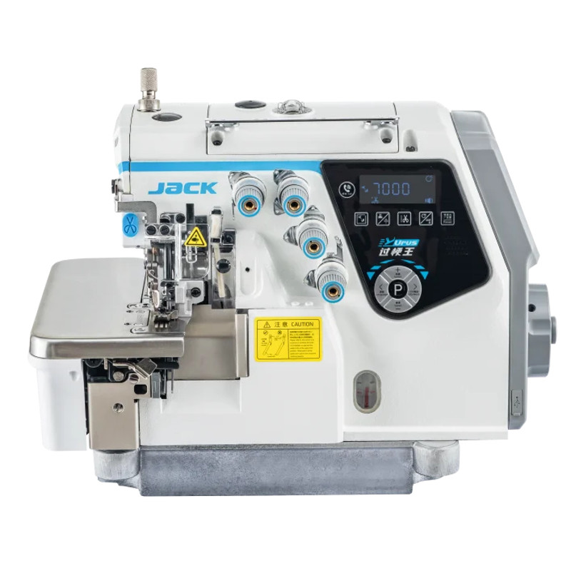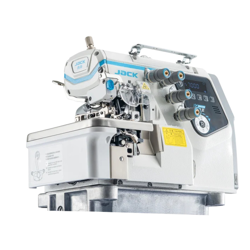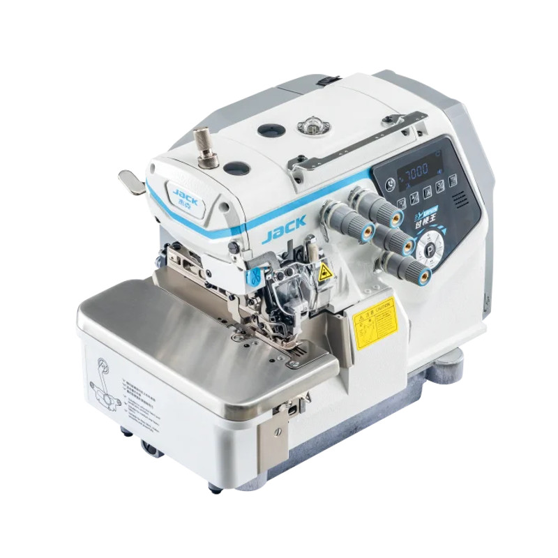 Najnowszy automatyczny overlock 3-nitkowy z systemem transportu opartym na sztucznej inteligencji. Maszyna szyjąca ozdobnym wąskim ściegiem typu merażka.