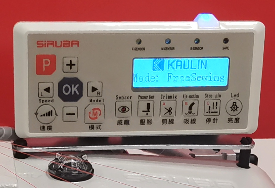 Maszyna wyposażona jest w czytelny panel sterujący, na którym ustawiamy wszystkie parametry związane z funkcjami automatycznymi. Silnik energooszczędny servo zamontowany na główce maszyny, bezpośrednio na wale głównym. Takie rozwiązanie daje gwarancję cichej pracy oraz wpływa na zmniejszenie zużycia energii.