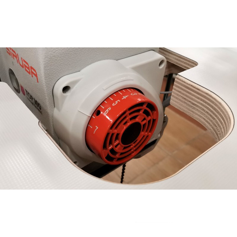 Maszyna standardowo wyposażona jest w nowoczesny silnik energooszczędny servo 230V zamontowany bezpośrednio na maszynie (system Direct Drive) oraz zintegrowane oświetlenie LED pola pracy.