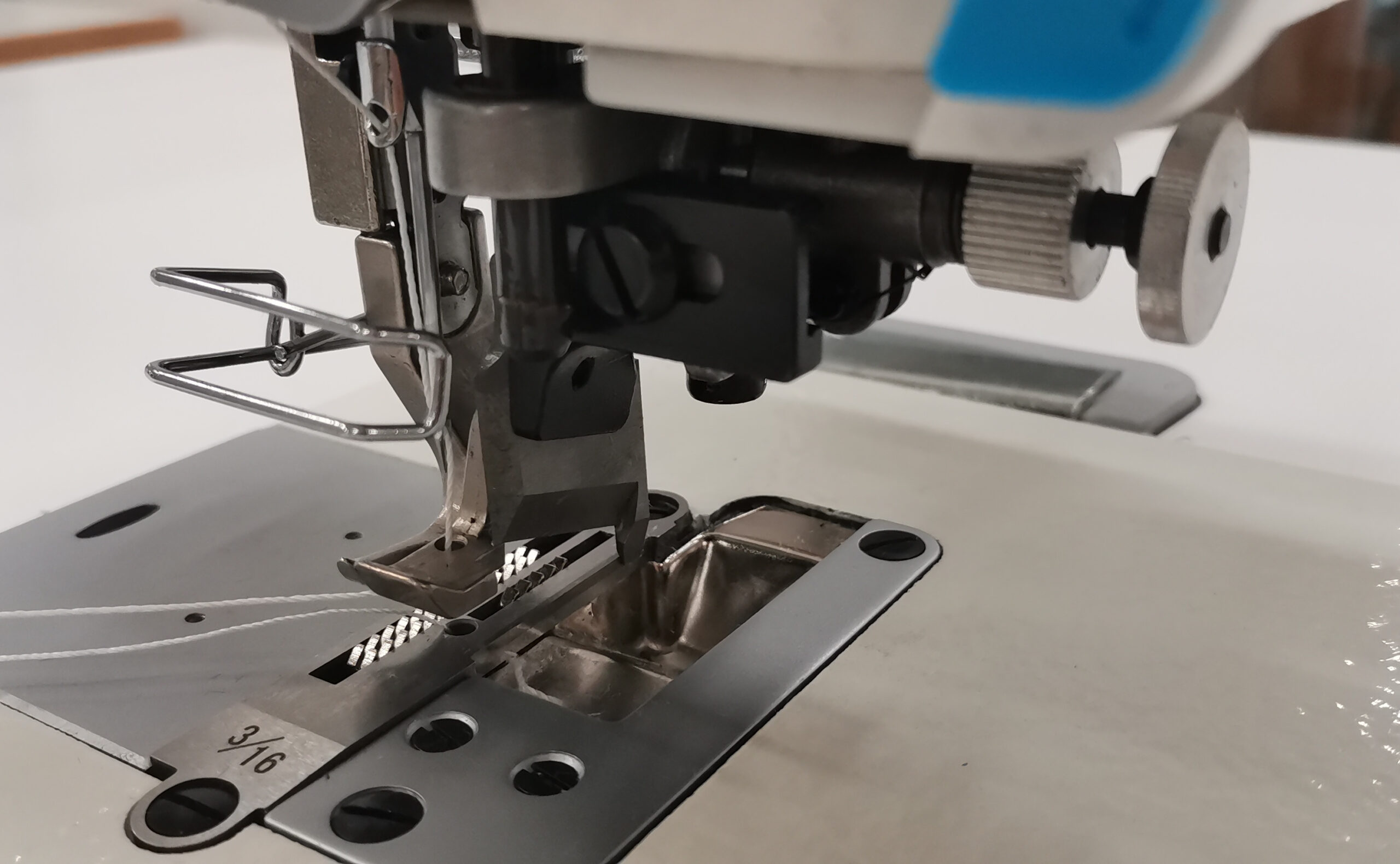 Stebnówka 1-igłowa z podwójnym transportem stopkowo-ząbkowym, automatyką oraz brzegowym odkrawaczem materiału, przeznaczona do szycia materiałów średnich i ciężkich.