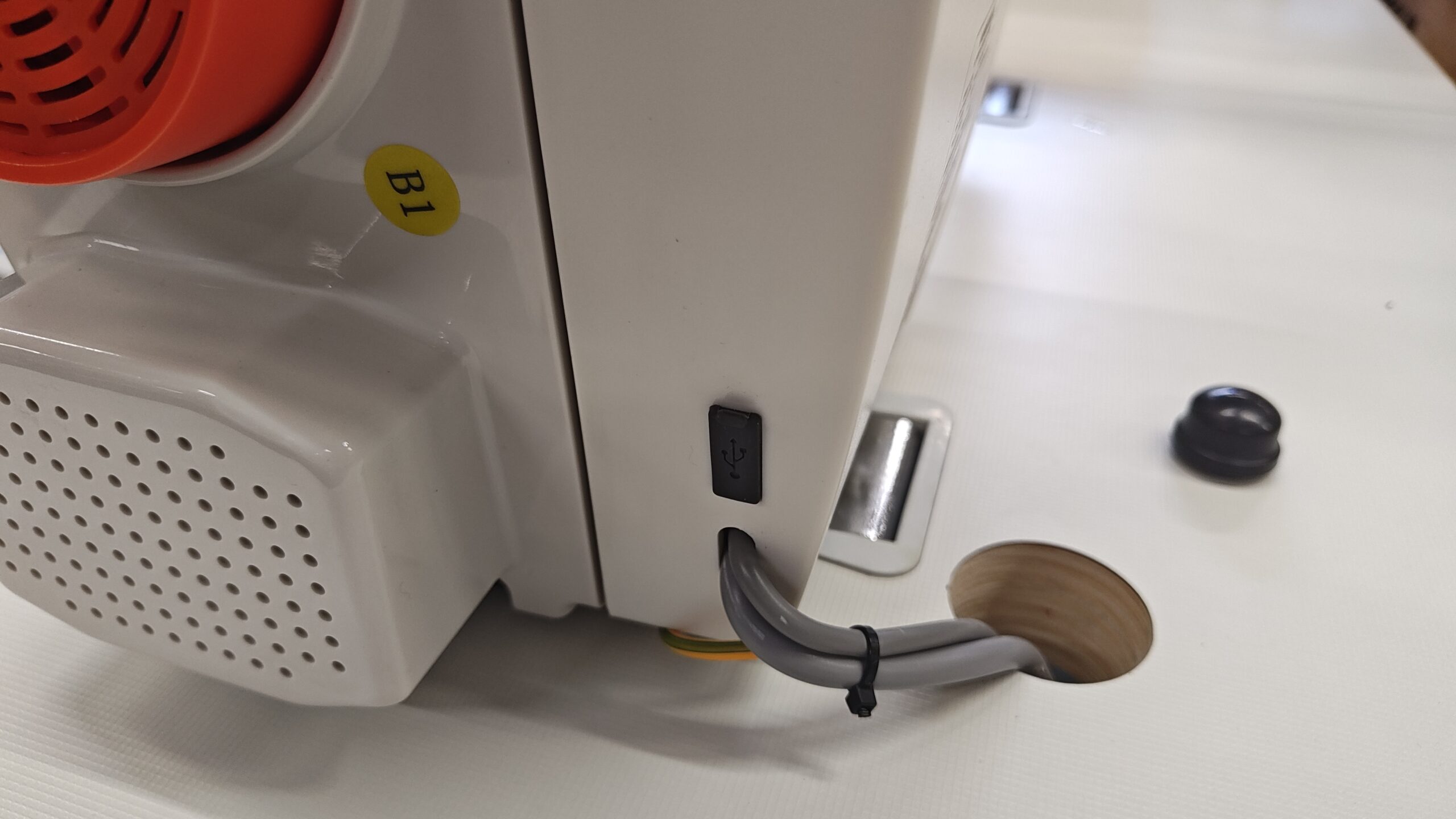 Maszyna wyposażona jest w nipper przytrzymujący nitkę na początku szycia oraz trzy przyciski funkcyjne umieszczone w łatwo dostępnym miejscu obok igielnicy: